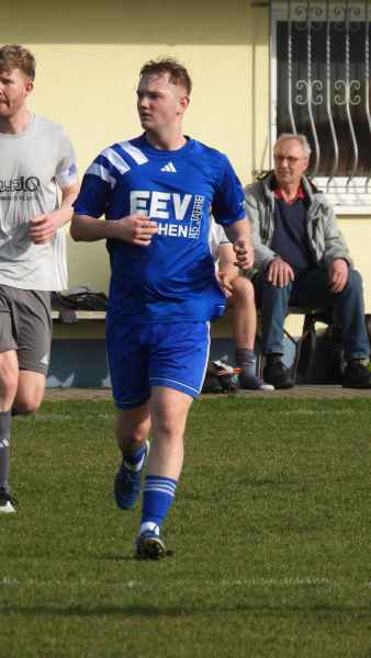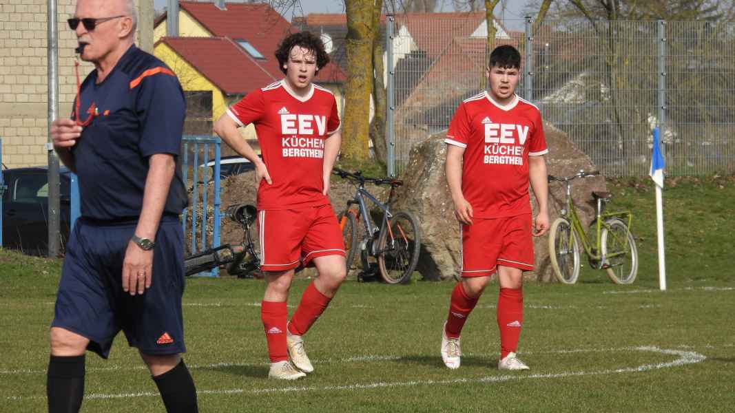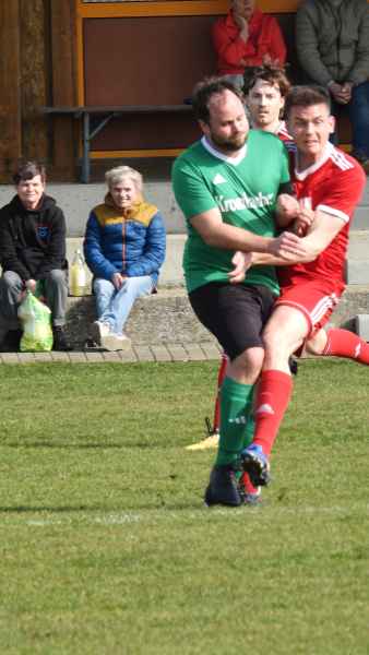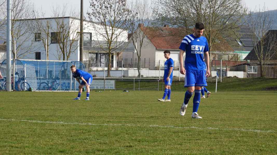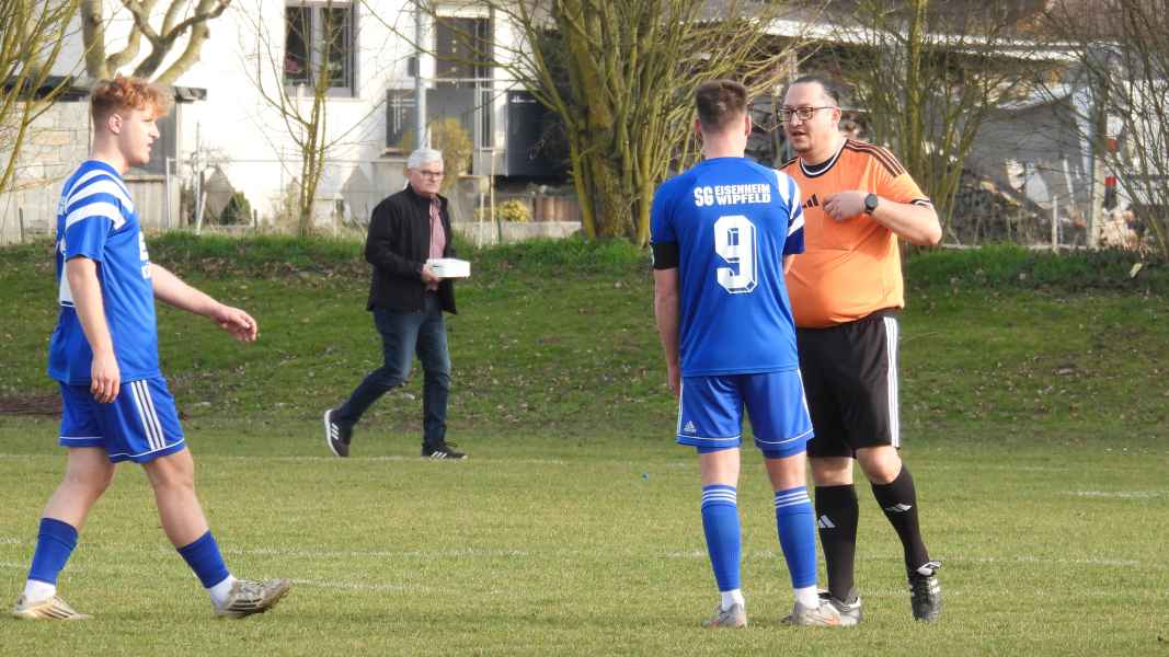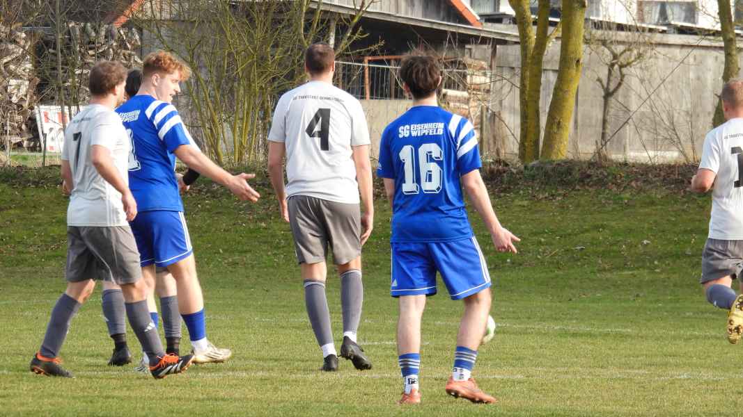 Trotz bester äußerer Bedingungen wurde die Partie in Donnersdorf auf dem Nebenplatz ausgetragen. Die Gastgeber, als vorletzter der Liga in die Begegnung gegangen, erwarteten die SG kompakt an der Mittellinie. Die Elf aus Eisenheim/Wipfeld musste zudem mit dem letzten Aufgebot antreten und hatte von Beginn an die schwierige Aufgabe, selbst das Spiel gestalten zu müssen. Aber das fiel der SG vor allem in der ersten Halbzeit nicht leicht. Donnersdorf stand kompakt, machte die Räume eng und lauerte auf Umschaltmomente. So kamen auch die Hausherren zu ihrer ersten Möglichkeit per Weitschuss. Auf der anderen Seite hatte die SG nach rund einer halben Stunde ihre beste Chance des ersten Durchgangs: Nach einem Querschläger in der Donnersdorfer Defensive kam plötzlich Gefahr auf, doch der Keeper der Gastgeber reagierte stark und parierte. Im direkten Gegenzug hatte dann Donnersdorf seine bis dahin beste Gelegenheit, doch Linus Köhler rettete mit einer starken Grätsche in höchster Not. In der Folge ergaben sich für die Gastgeber noch einige vielversprechende Aktionen.