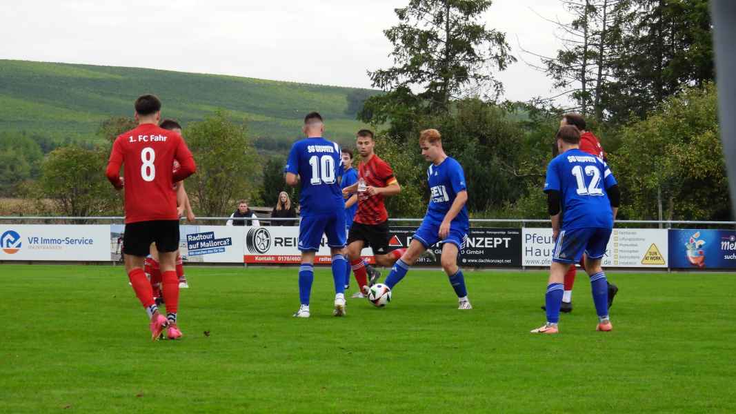 Bei herbstlichem Wetter und starker Zuschauerkulisse ging es für die SG Eisenheim/Wipfeld am zweiten Kulturherbst-Wochenende ins Derby gegen den 1. FC Fahr. Die SG begann mutig mit Offensivpressing und wollte die Gäste tief in deren Hälfte zu Fehlern zwingen. Erste Halbchancen sprangen heraus, doch auch Fahr war über schnelle Gegenangriffe gefährlich. In der 14. Minute musste Keeper Maxi Schanz erstmals ernsthaft eingreifen.