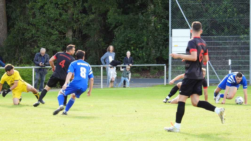 Beide Mannschaften starteten zunächst kontrolliert und suchten den Weg über einen geordneten Spielaufbau. Klare Chancen blieben zu Beginn Mangelware. In der 16. Spielminute war es dann wieder der aktuell gut aufgelegte Phillip Lother, der im Strafraum für Gefahr sorgte. Sein Gegenspieler traf ihn beim Klärungsversuch am Fuß, bevor er den Ball erwischte – der Schiedsrichter entschied folgerichtig auf Strafstoß. Torjäger Ben Schuler ließ sich die Gelegenheit nicht nehmen und verwandelte souverän zur 1:0-Führung.