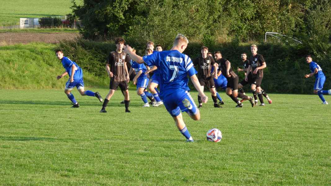 Woran lag’s? Nach wie vor fehlen wichtige Spieler verletzt oder mit Trainingsrückstand und die Gastgeber lieferten einen läuferisch starken und verbissenen Kampf – aber eigentlich war das nicht der Knackpunkt. Die drei Gegentore fielen durch die allzu freundliche Mithilfe unserer Defensive. Aus eigener Kraft heraus hatte Geusfeld kaum Nennenswertes zustande gebracht, die drei Tore waren ärgerliche Geschenke. Immerhin: Zwei Mal netzte Ben Schuler ein und bewies damit einmal mehr seinen Torjägerinstinkt. Am Ende aber reichte das nicht, zu diszipliniert verteidigten die Geusfelder ihren ersten Heimdreier der Saison.