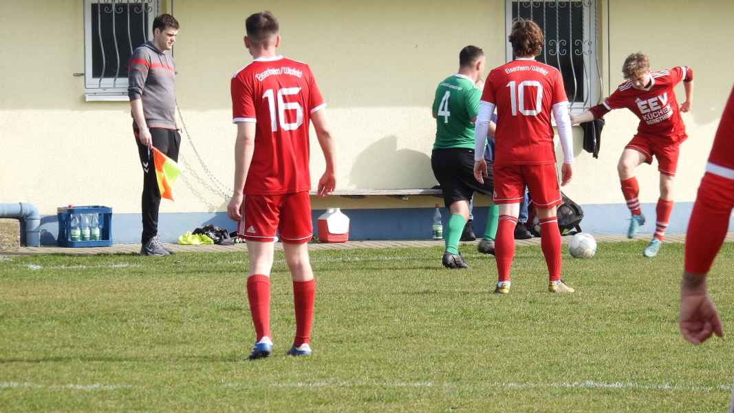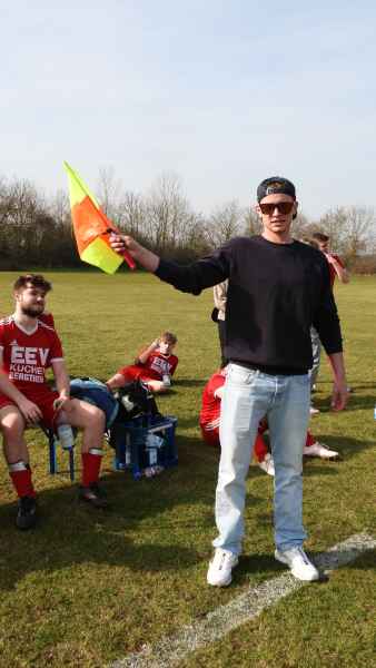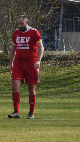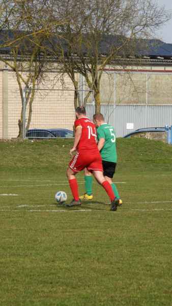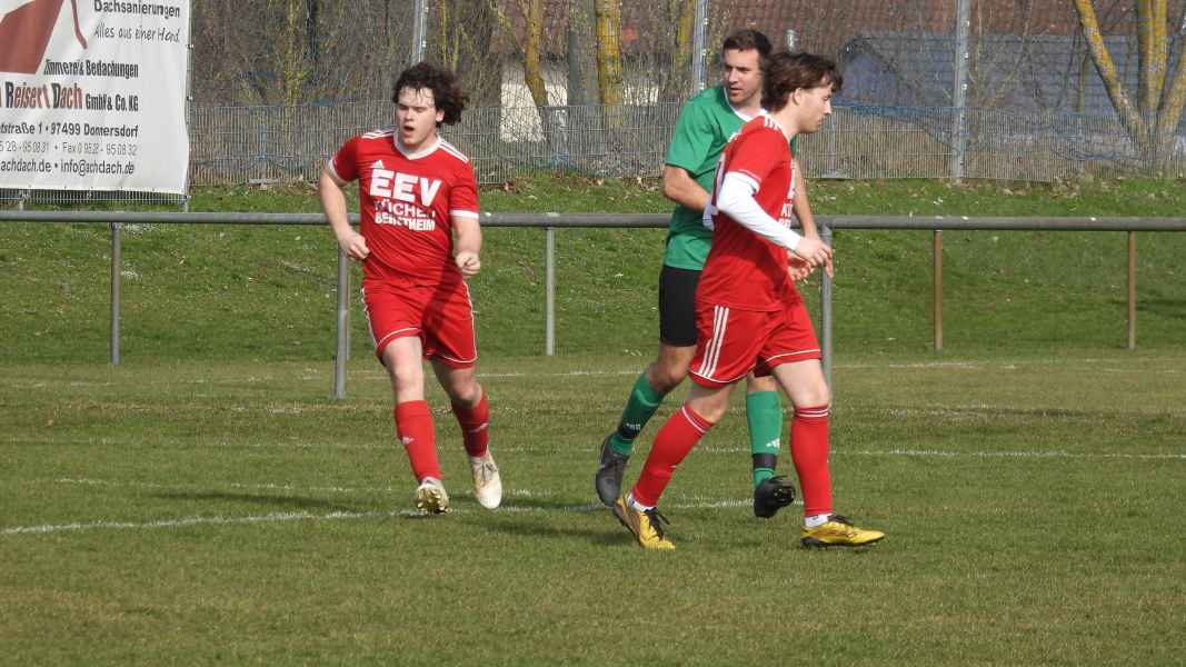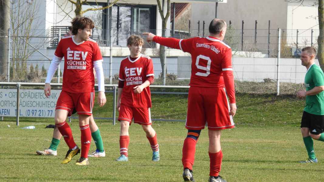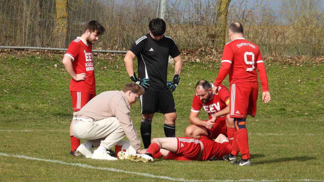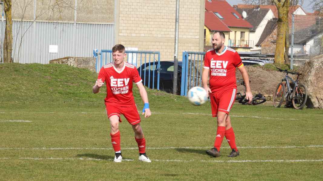 Trotz bester äußerer Bedingungen wurde die Partie in Donnersdorf auf dem Nebenplatz ausgetragen. Die Gastgeber, als vorletzter der Liga in die Begegnung gegangen, erwarteten die SG kompakt an der Mittellinie. Die Elf aus Eisenheim/Wipfeld musste zudem mit dem letzten Aufgebot antreten und hatte von Beginn an die schwierige Aufgabe, selbst das Spiel gestalten zu müssen. Aber das fiel der SG vor allem in der ersten Halbzeit nicht leicht. Donnersdorf stand kompakt, machte die Räume eng und lauerte auf Umschaltmomente. So kamen auch die Hausherren zu ihrer ersten Möglichkeit per Weitschuss. Auf der anderen Seite hatte die SG nach rund einer halben Stunde ihre beste Chance des ersten Durchgangs: Nach einem Querschläger in der Donnersdorfer Defensive kam plötzlich Gefahr auf, doch der Keeper der Gastgeber reagierte stark und parierte. Im direkten Gegenzug hatte dann Donnersdorf seine bis dahin beste Gelegenheit, doch Linus Köhler rettete mit einer starken Grätsche in höchster Not. In der Folge ergaben sich für die Gastgeber noch einige vielversprechende Aktionen.